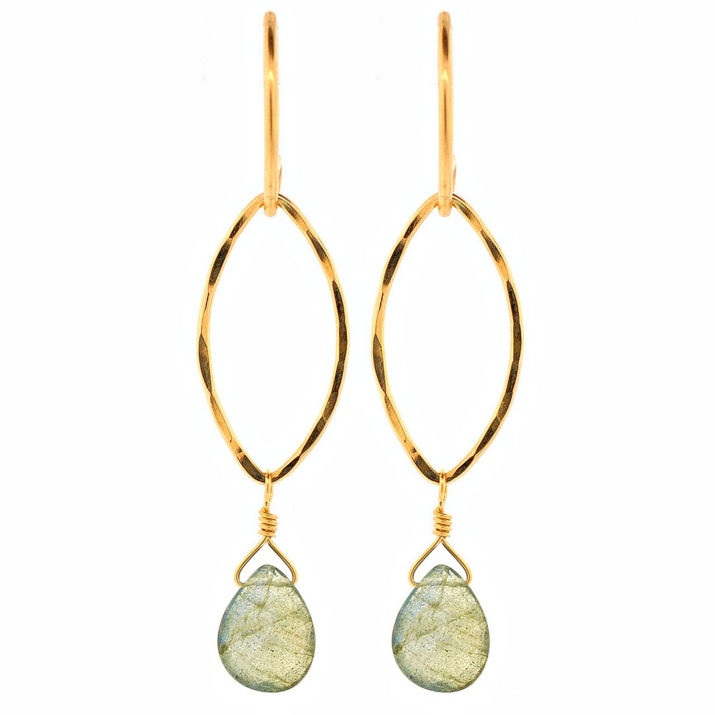 Model Shown Wearing Labradorite | 1.75" Long | Stone Dimensions: 9mm x 7mm