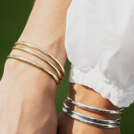 JB loves to pair this with our Thin Wrapped Cuff and our Twisted Wire Cuff. Combining our glam gemstone looks with rockless pieces is a staple for our staff. We can't wait to see which memorable choice you pick!