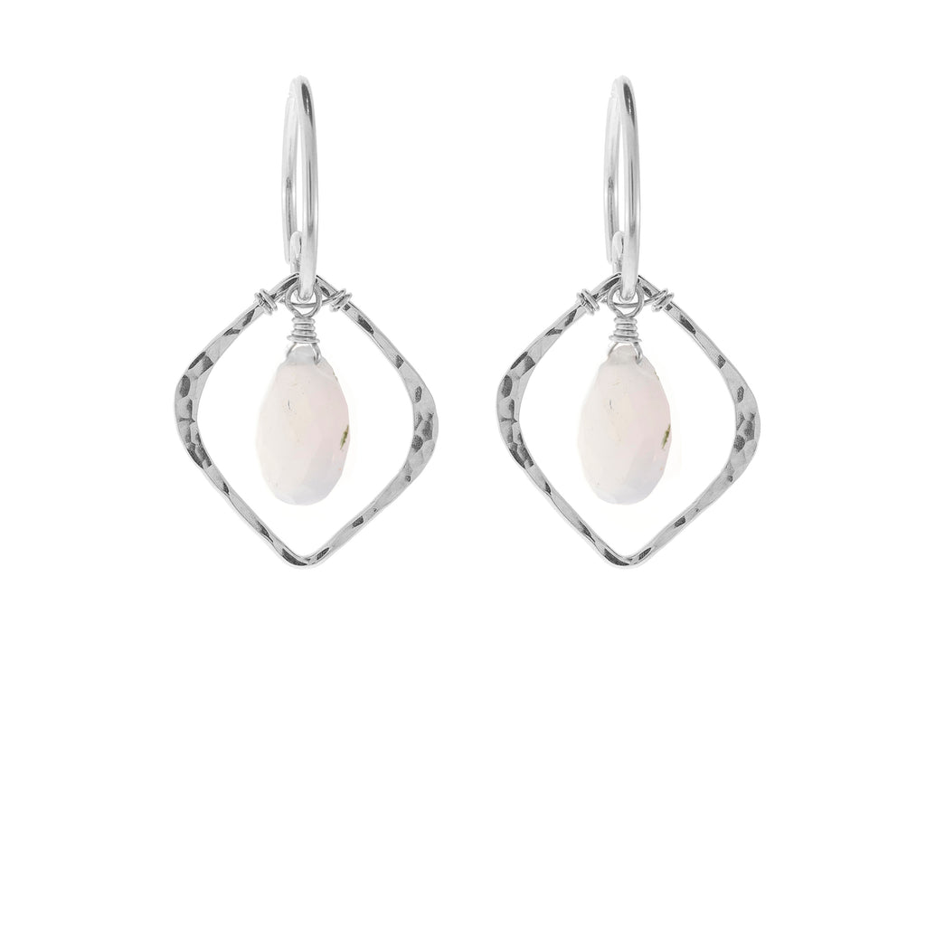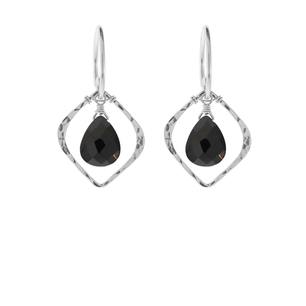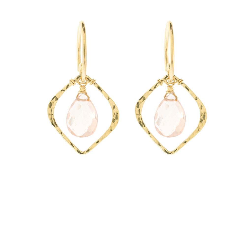 With a lovely hammered diamond shape and a beautiful teardrop stone, these are timeless and classy. Pair with our Rock Drop Elean Necklace for a matching piece!