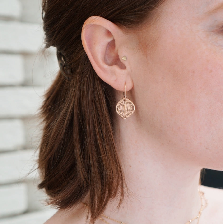 An everyday staple, with a bit of movement for those who don't care for posts. We've completely wire-wrapped our smallest Dominique shape for a classic and lovely look. These earrings can be dressed up if you wear with a ton of other gemstone pieces, or a little more simple on their own.